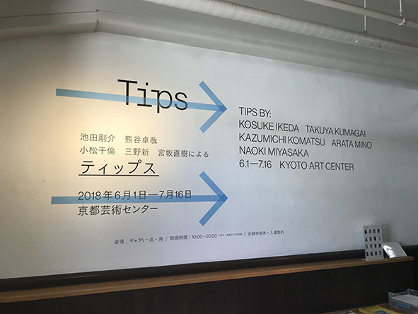 Tips 2018 Venue Kyoto Art Center Curation Naoki Miyasaka Artist Kosuke Ikeda Kazumichi Komatsu Takuya Kumagai Arata Mino Naoki Miyasaka Design Shun Ishizuka Photo Arata Mino